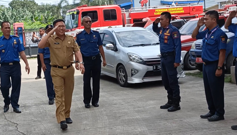 Pejabat BPBD dan Petugas Damkar Sambut hangat kedatangan Pemimpin baru BPBD Kabupaten Tangerang.